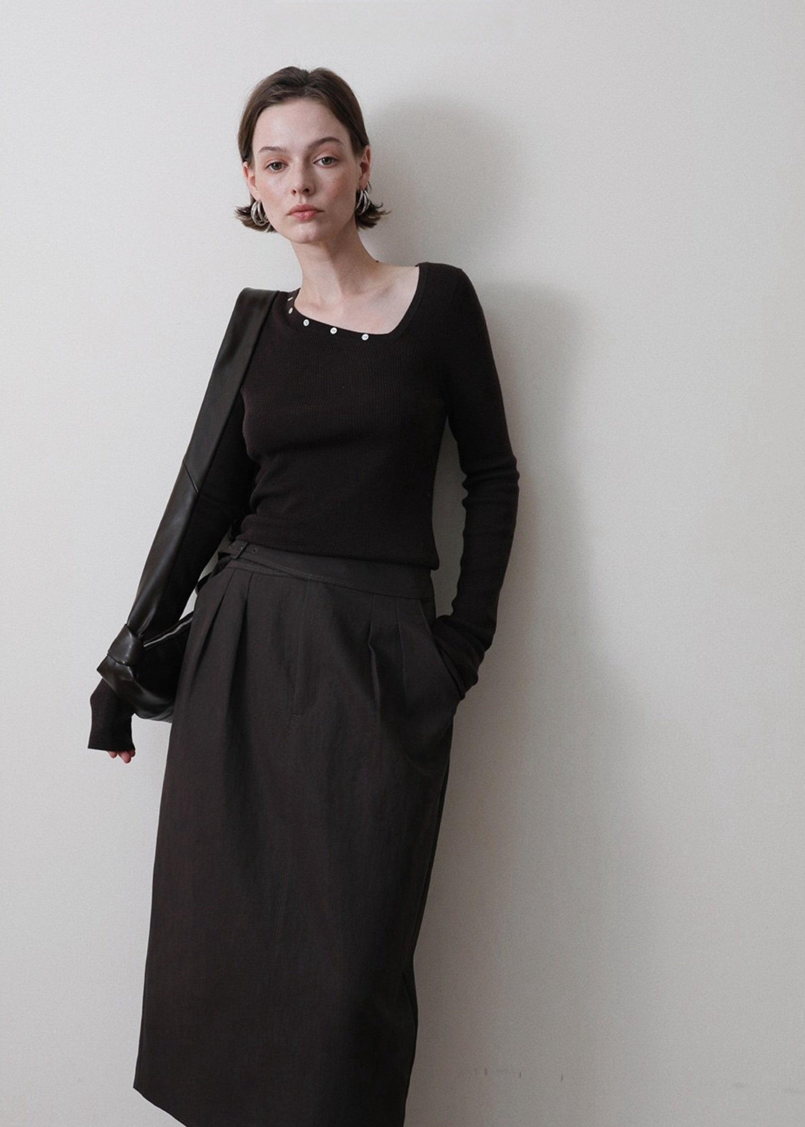 日常に溶け込む、都会的ミディスカート。